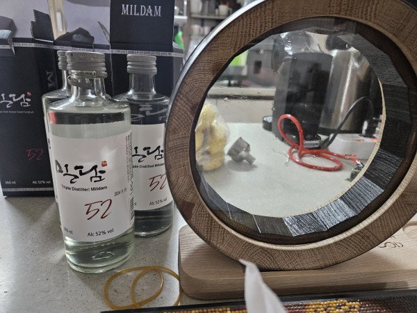 3일이 지나 속을 비운 캐스크와 힘빼기 용으로 사용한 코리안 단수수 럼, 밀담 52입니다.