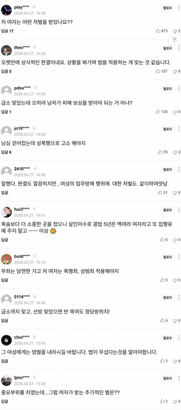 전단지 여성에 낭심 차이자 폭행해 제압한 아파트 경비원 무죄