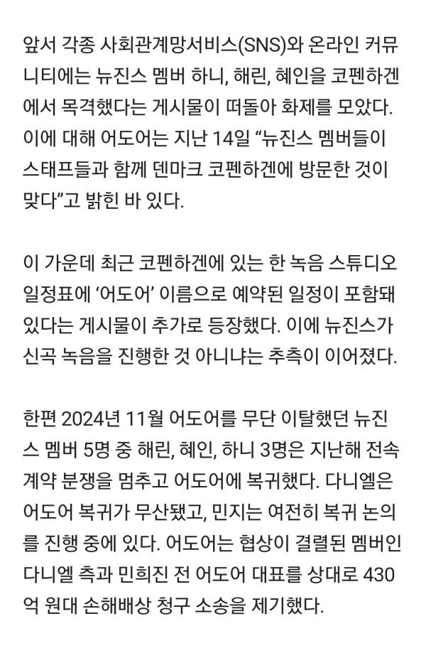 뉴진스 신곡 녹음하러 코펜하겐 갔나... 예약자명 ADOR 눈길