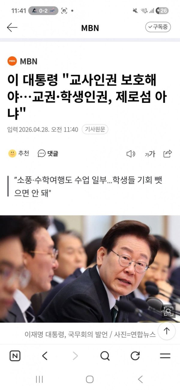 이재명 대통령이 28일 열린 국무회의에서 일부 학교의 소풍 및 수학여행 기피 현상과 관련해 "책임을 안 지려고 학생들한테서 좋은 기회를 빼앗는 것이지 않느냐"고 발언한 데 대해 교원단체들이 반발했다. 전국교직원노동조