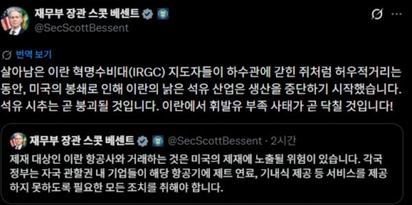 이란맘들만 부정하는거지 괜히 호르무즈 열게