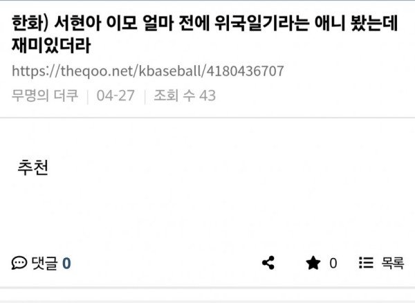 저 아나운서 16시간 전 올라온 글인데