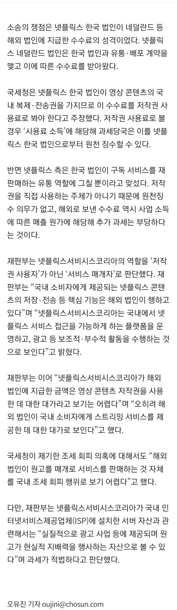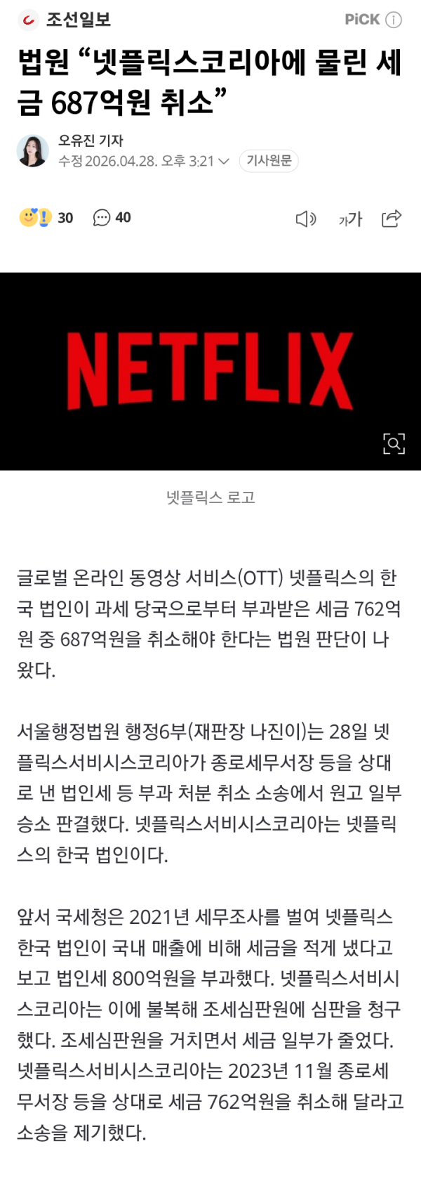 법원 “넷플릭스 코리아에 물린 세금 687억원 취소”