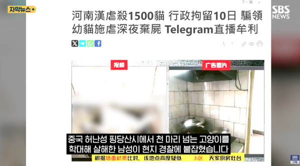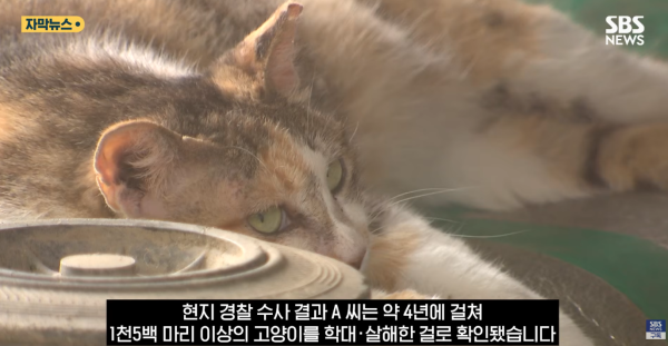 중국 허난성 핑당산시에서 천 마리 넘는 고양이를 학대해 살해한 남성이 현지 경찰에 붙잡혔습니다.최근 일대에서는 학대 흔적이 있는 고양이 사체가 잇따라 발견됐는데, 이를 수상하게 여긴 지역 유기 동물 구조 활동가들이 용의자 추적에 나섰고, 중년 남성 A 씨를 특정해 경찰에 신고했습니...