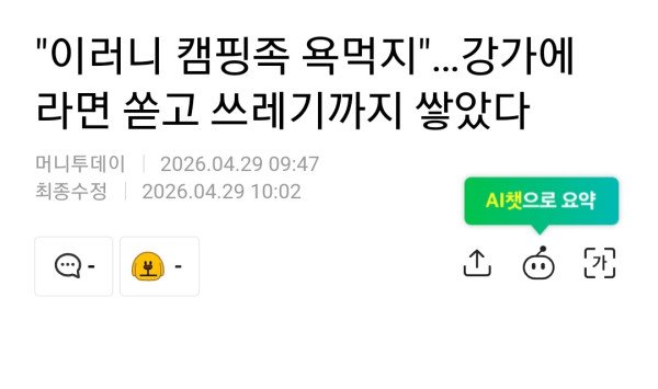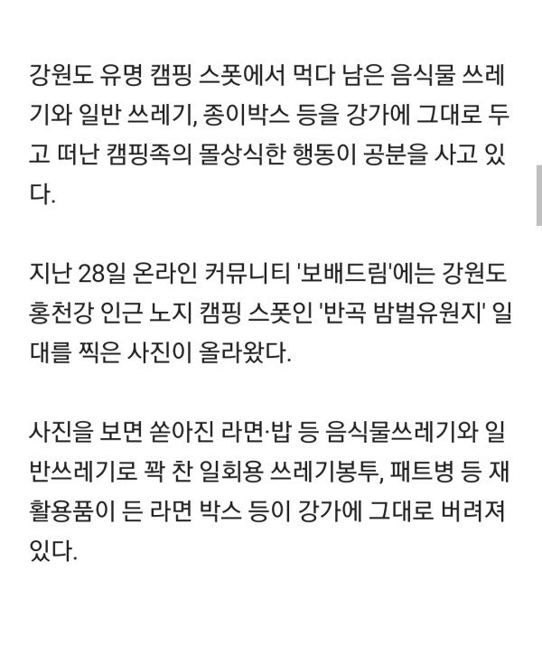 강가에 라면 쏟고 쓰레기 버리고간 캠핑족