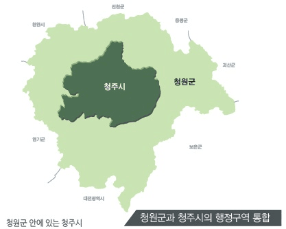 청주시랑 청원군이 합쳐진 케이스라 보면 되겠습니다