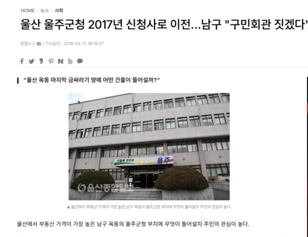 그런데 군청은 울주군 안이 아니라 울산 남구에 있었습니다