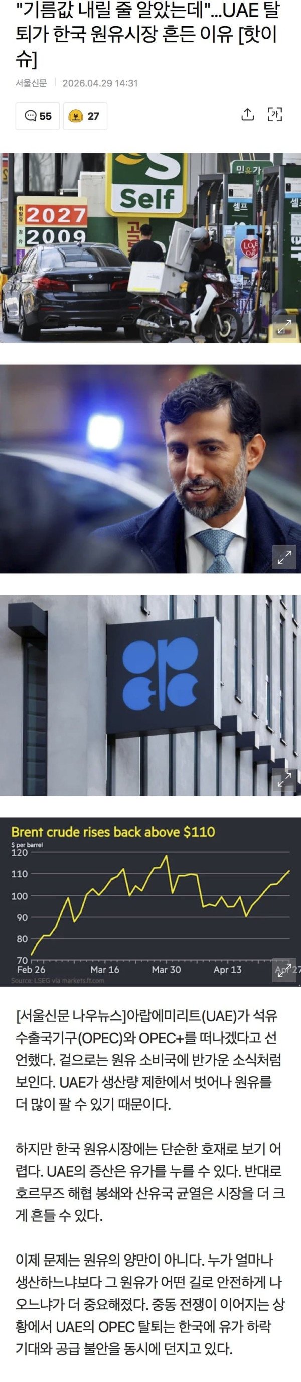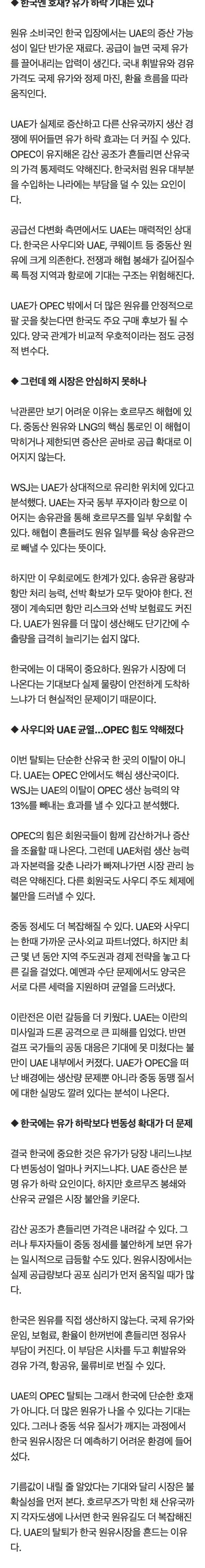"기름값 내릴 줄 알았는데"…UAE 탈퇴가 한국 원유시장 흔든 이유