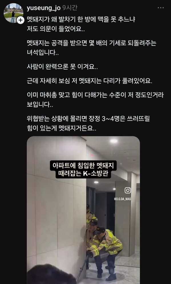 멧돼지가 사람 발차기에 왜 이리 무력한지 의문가지는 사람들