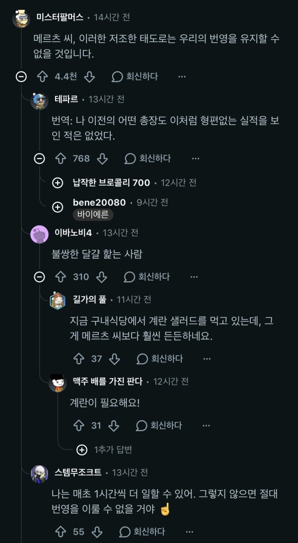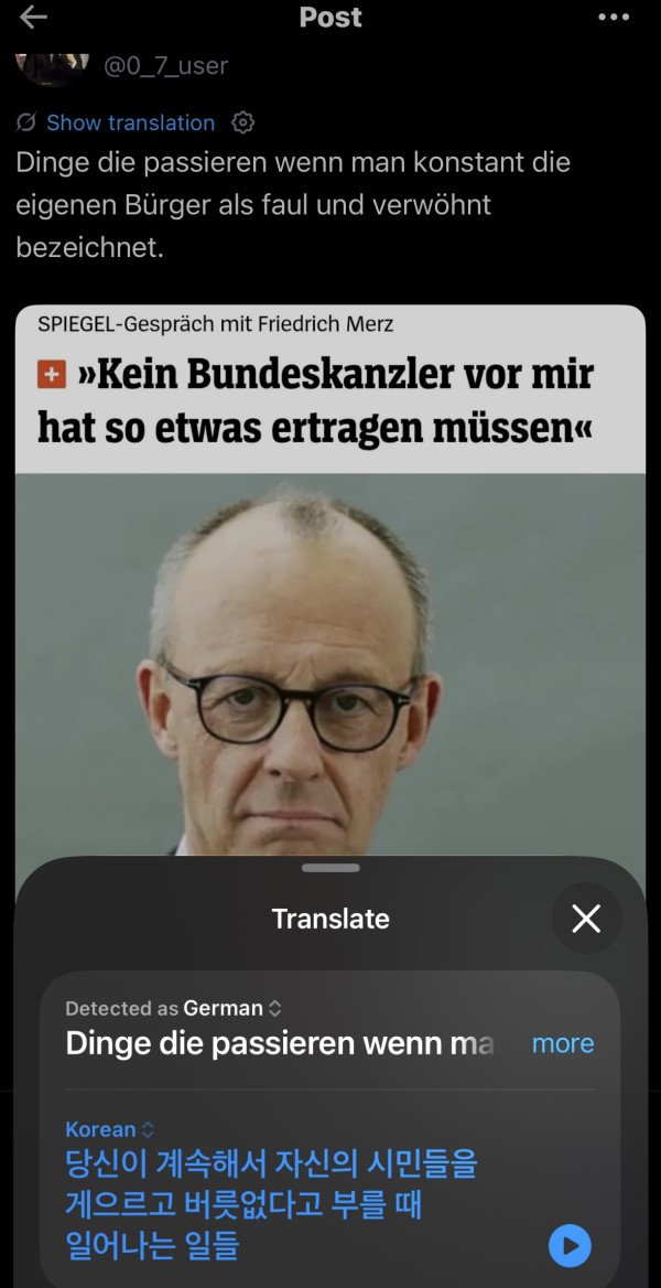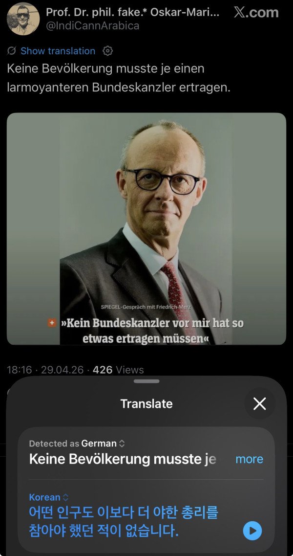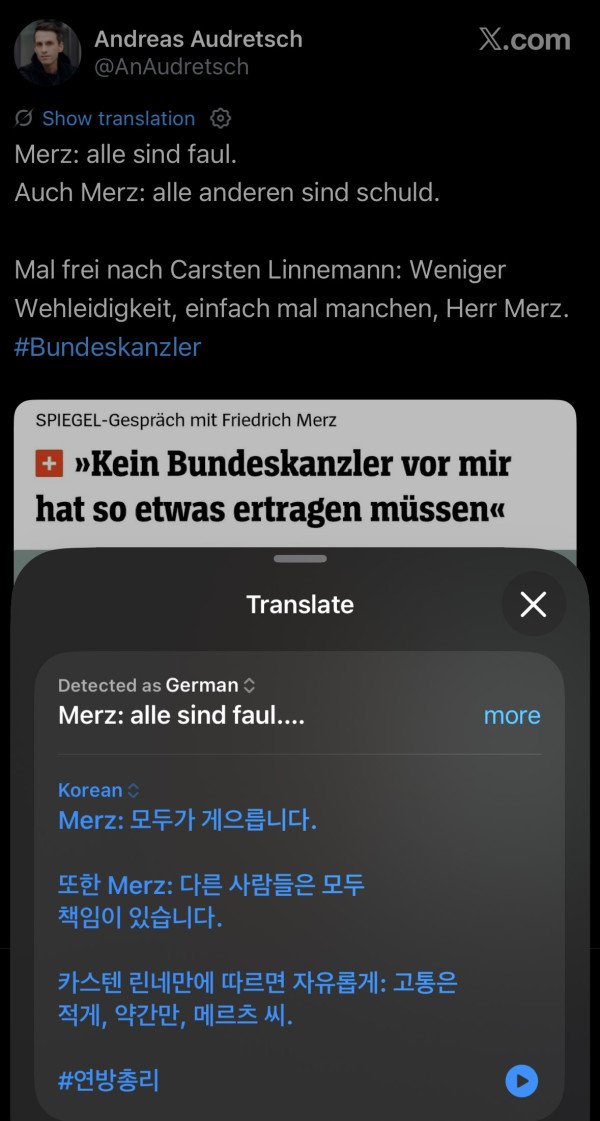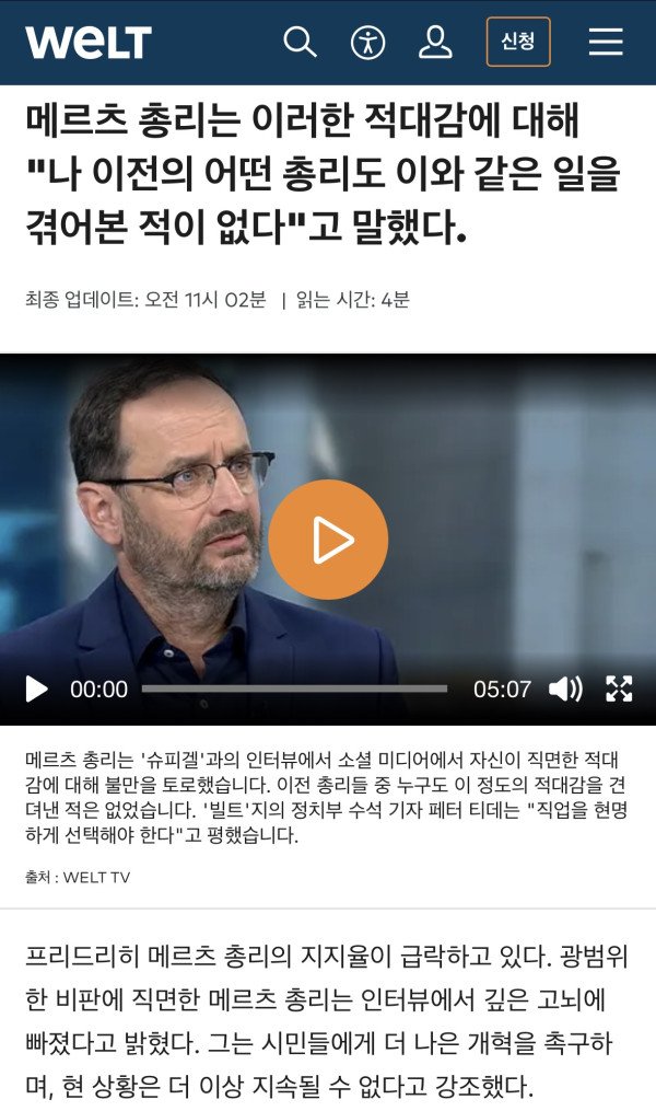 지금 총리 일이 힘들다고 징징대는 메르츠는 독일국민들이 너무 게으르고 일을 안하려고한다는 발언을 꾸준히 해서 그동안 지가 까일 빌드업을 쌓아놧던것도 잇음