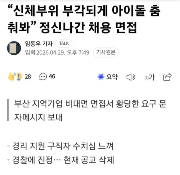 “신체부위 부각되게 아이돌 춤 춰봐” 정신나간 채용 면접