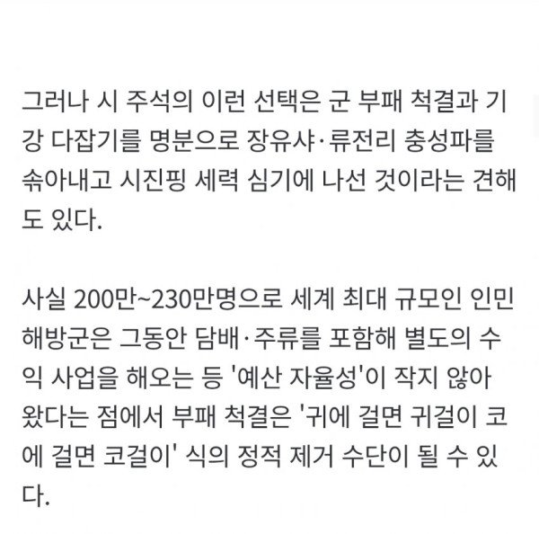 • 군사 평론가들은 이번 숙청으로 단기적인 혼란은 있겠지만, 장기적으로 인민해방군의 현대화 속도를 높이고 공산당의 통제력을 공고히 하여 대만 문제에 대한 협상력을 강화할 수 있을 것으로 전망했다.