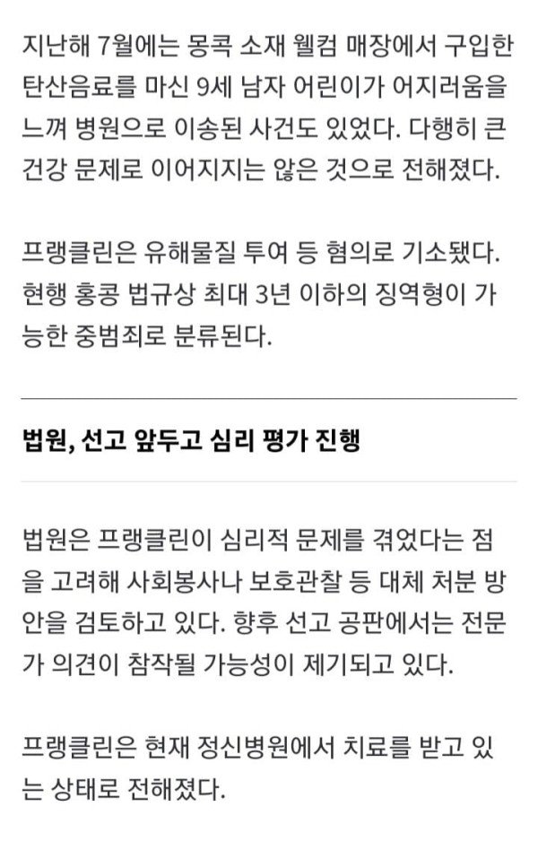 홍콩에서 한 60대 남성이 탄산음료에 자신의 소변을 넣어 슈퍼마켓에 진열대에 놓는 악취미 행동을 1년 넘게 반복한 사실이 드러나 현지 사회에 충격을 주고 있다. 지난달 27일(현지시간) 사우스차이나모닝포스트(SCMP