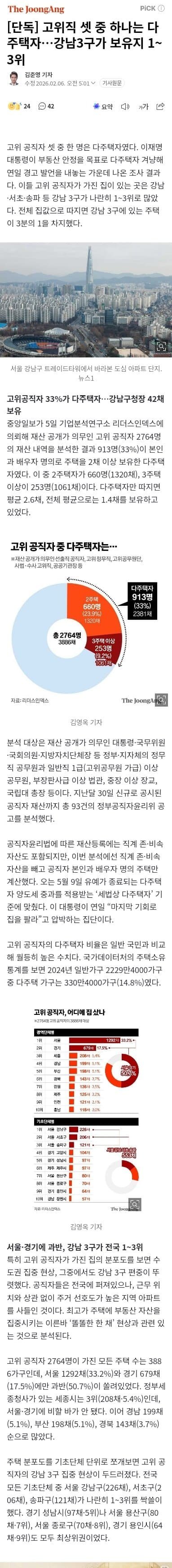 [단독] 고위직 셋 중 하나는 다주택자…강남3구가 보유지 1~3위