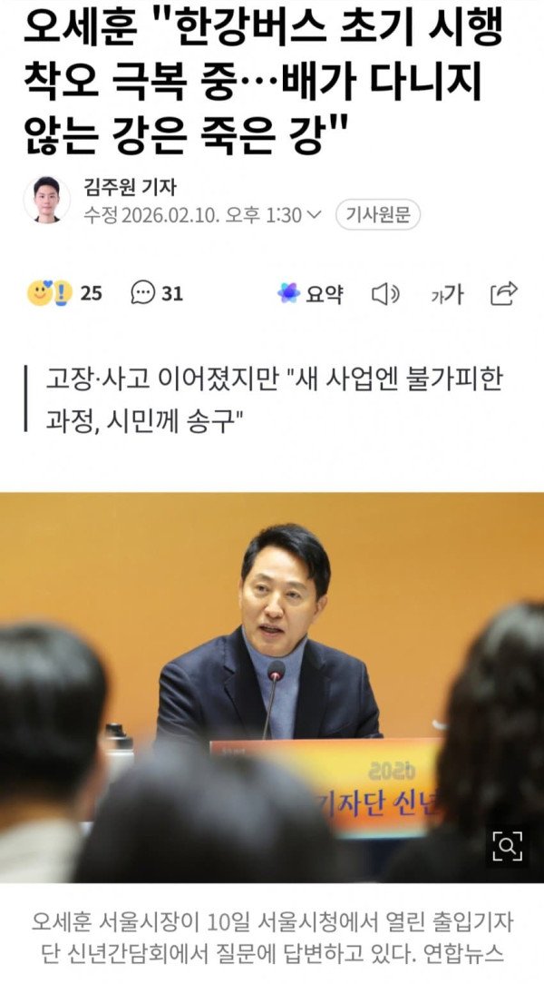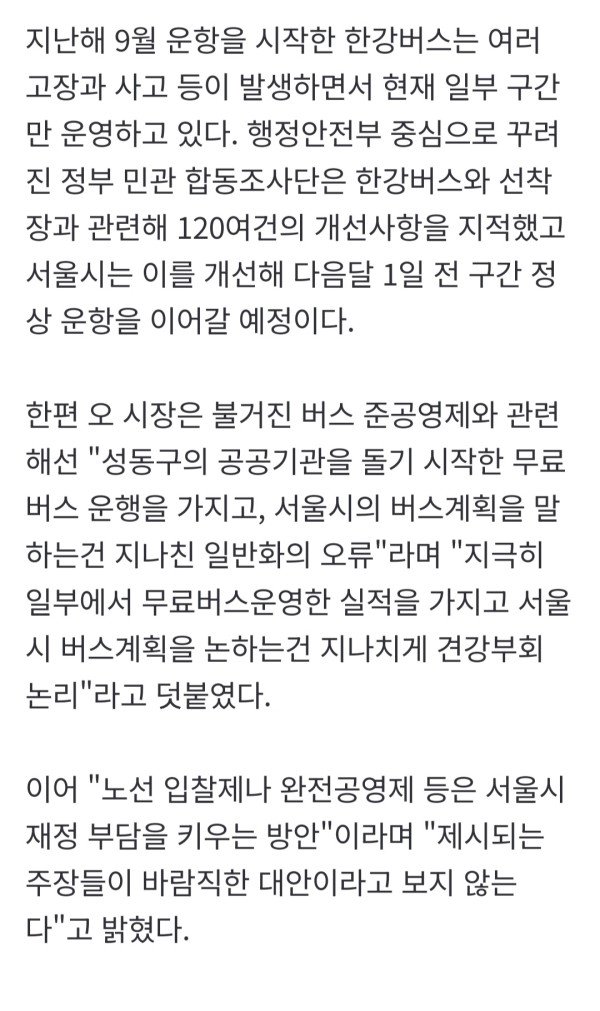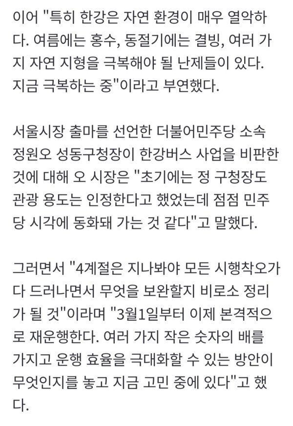 오세훈 한강버스 초기 시행 착오 극복 중..