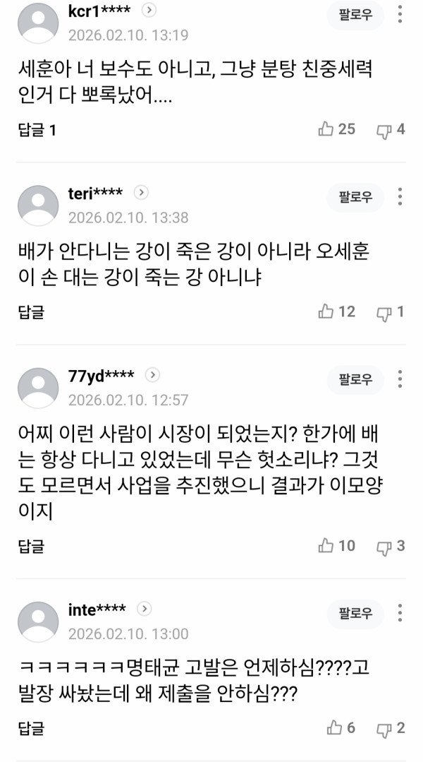앞서 국민의힘이 한동훈 전 대표를 제명하면서 오 시장은 장동혁 대표를 향해 연일 강경 발언을 쏟아냈다. 정치권 일각에서는 지방선거를 앞두고 불거진 당내 갈등에 오 시장의 무소속 출마나 탈당설을 제기하기도 했다.