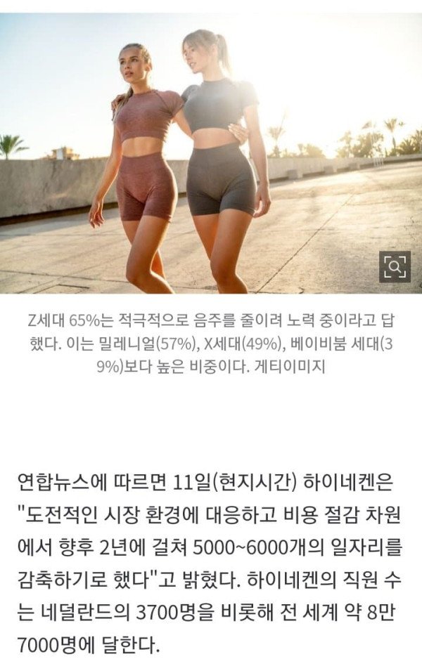 사회 전반적으로 음주를 줄이는 분위기가 강화하는 가운데, 세계 2위 맥주 제조업체인 하이네켄이 최대 6000명을 감원할 방침이다. 연합뉴스에 따르면 11일(현지시간) 하이네켄은 "도전적인 시장 환경에 대응하고 비용