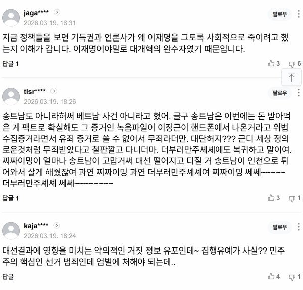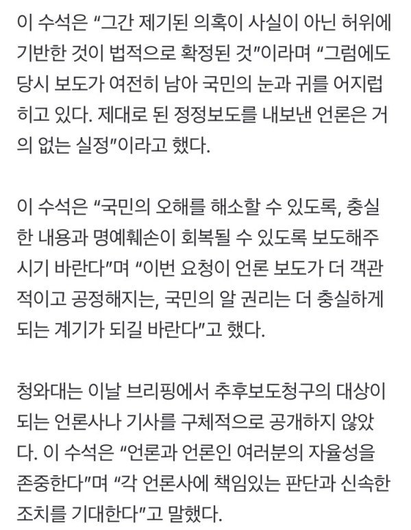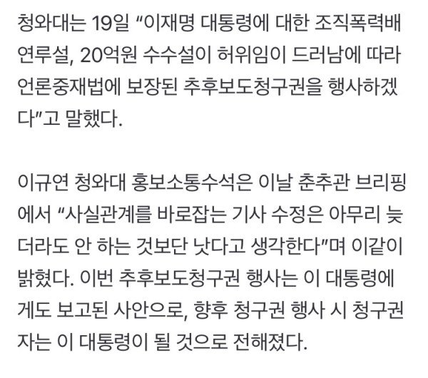 청와대 ”이재명 조폭연루설 허위 기사 써달라“