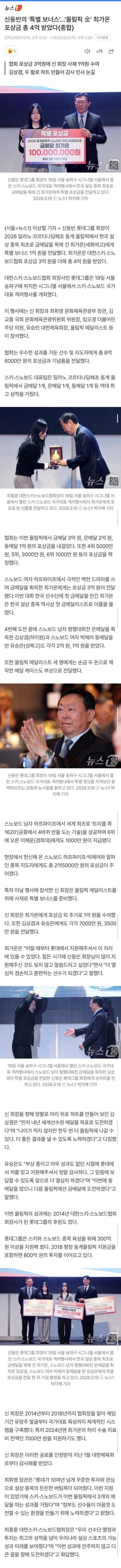 오늘 금메달 포상금 포함 총 4억의