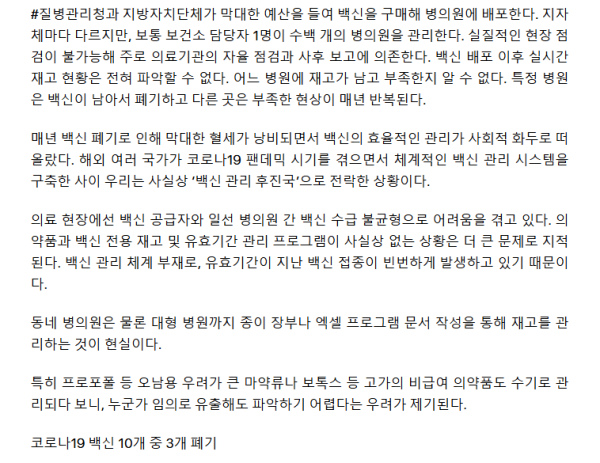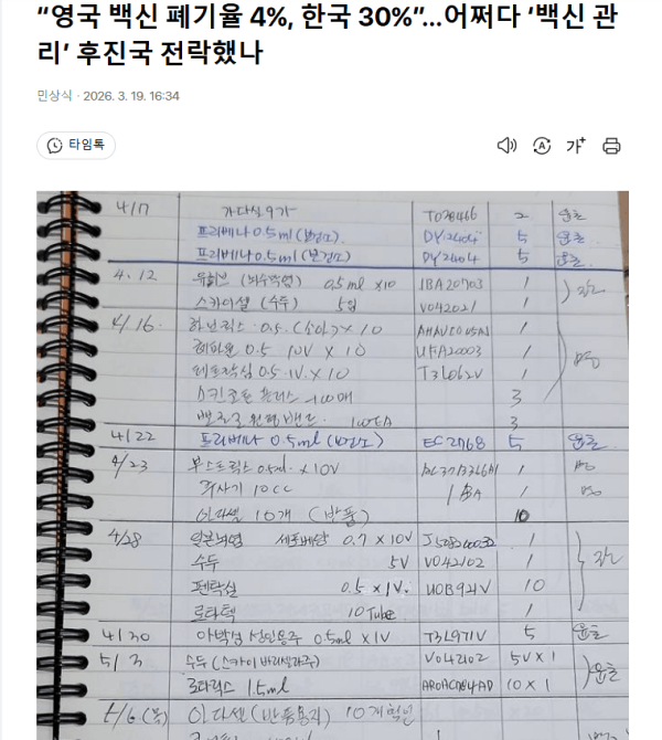 "영국 백신 폐기율4%, 한국30%"어쩌다 '백신 관리'후진국 전락했나