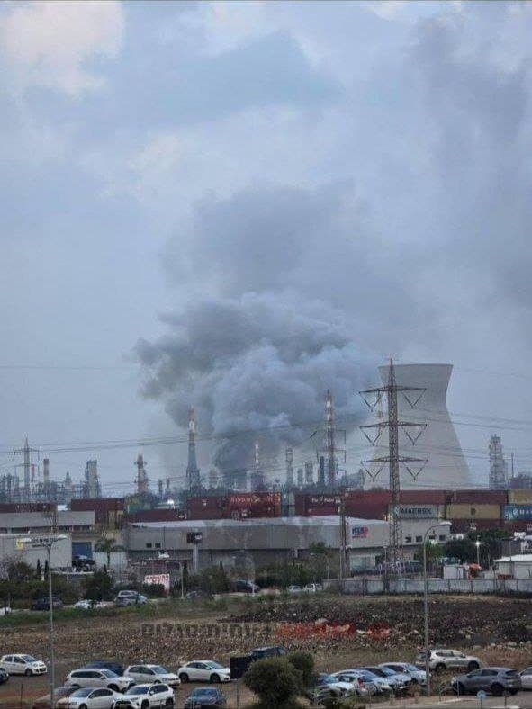 하이파 정유소의 충돌은 이란 탄도 미사일 요격 후 파편이 떨어지면서 발생했습니다.