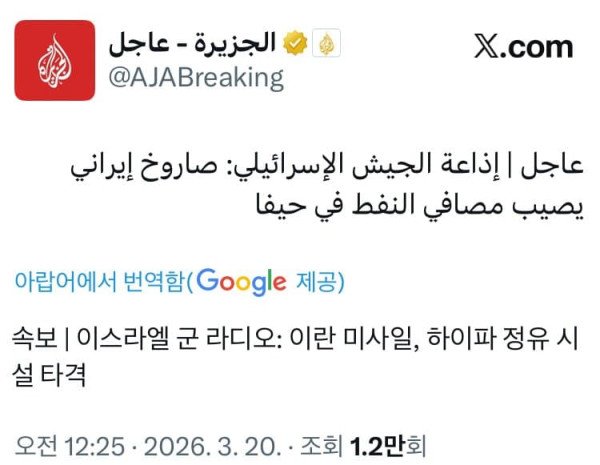 [속보] 이스라엘 최대 정유시설 피격