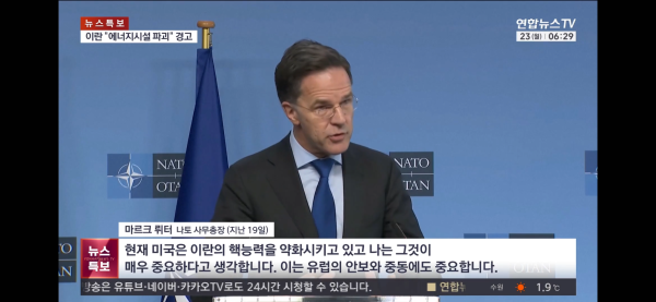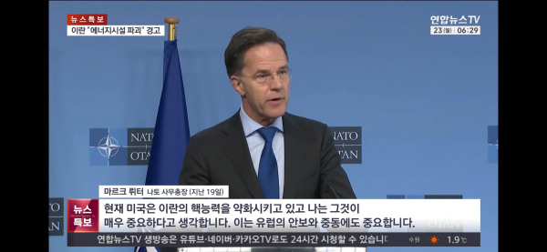 <마르크 뤼터 나토 사무총장 (지난 19일)> "현재 미국은 이란의 핵 능력을 약화시키고 있고 나는 그것이 매우 중요하다고 생각합니다. 이는 유럽의 안보와 중동에도 중요합니다."마르크>