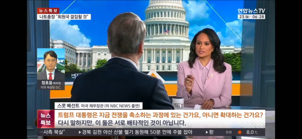 <스콧 베선트 미국 재무장관(미 nbc news 출연)> "(트럼프 대통령은 지금 전쟁을 축소하는 과정에 있는 건가요, 아니면 확대하는 건가요?) 다시 말하지만, 이 둘은 서로 배타적인 것이 아닙니다. 때로는 긴장을 완화하기 위해 긴장을 고조시켜야 할 때도 있습니다."스콧>