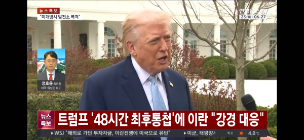 호르무즈 해협 통행 정상화까지 48시간의 말미를 준 트럼프 미국 대통령.