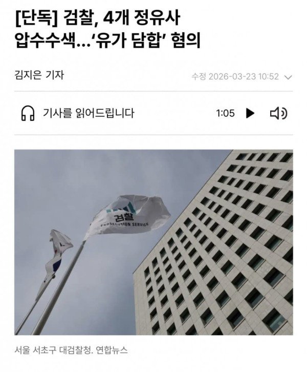 기사 검찰 4대 정유사 압수수색 유가담합 정조전