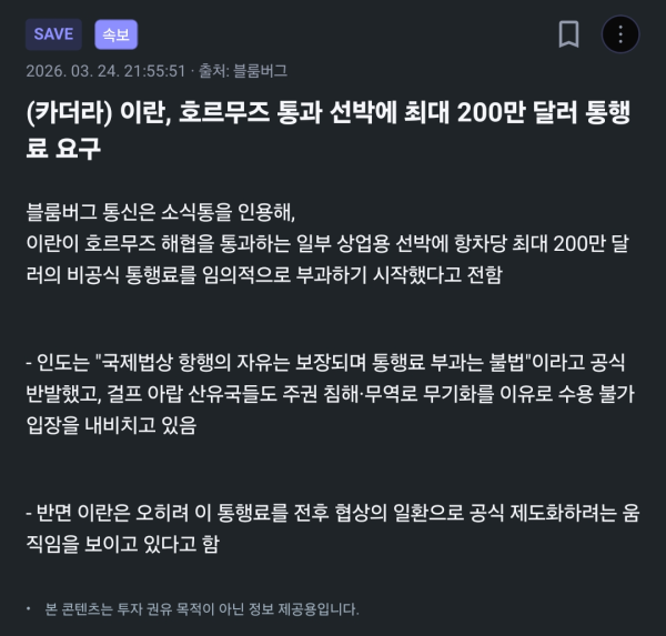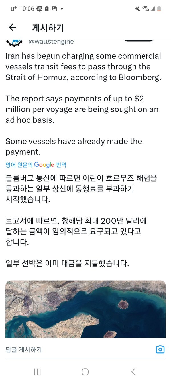 실시간 이란, 호르무즈 통행료 200만달러 요구ㅋㅋㅋㅋㅋㅋ