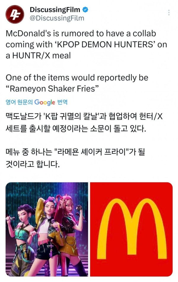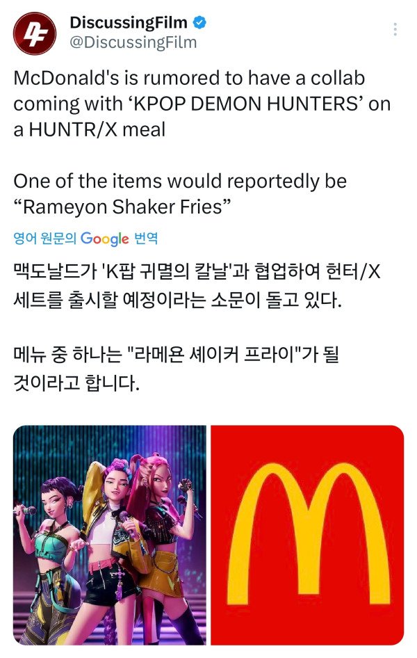 케이팝 데몬 헌터스 맥도날드 콜라보 루머