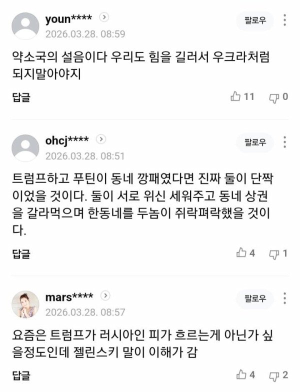 말존나 왜곡하네. 휴전을 해야 안전보장을 제공해줄수있다는건데. 나토확장으로 지들이 먼저 러시아공격했으면서 끝까지 휴전안하고 자국민 슬라브족 쓸어버리는 젤렌스키, 그리고 푸틴도 전쟁 못끝내는 거 보면 자본주의자 영국 천주교 사탄이 슬라브 말살을 위해 계회긍ㄹ 추친한게 아닌가 하는 생각이 든다. 1,2차 세계대전도 짜고친 학살극인데, 러우전이라고 다를까.