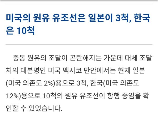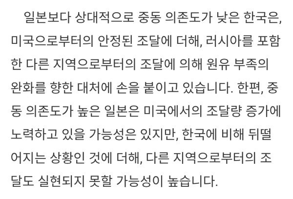 일본 증권사피셜)한국이 일본보다 석유조달 잘하는중