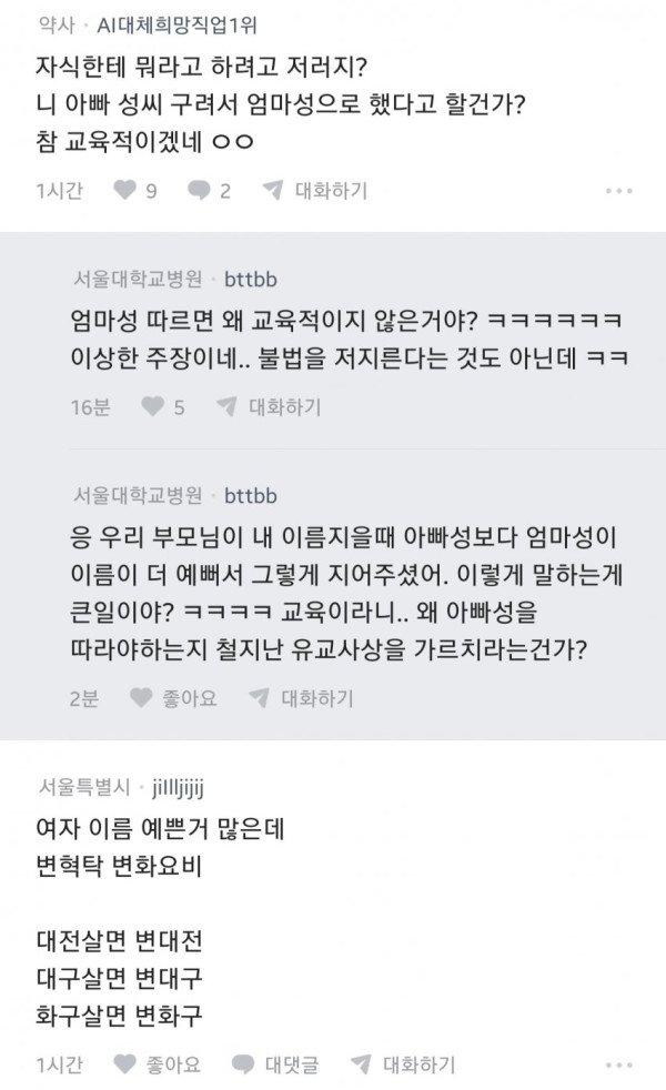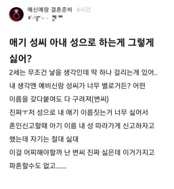 애기 성씨 아내 성으로 하는게 그렇게 싫어??