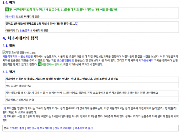 어느 순간부터 '여주대의 희망', '치위생사로 선한 영향력' 같은 허위정보를 작성하는 빌런이 나타나고 3개월동안 꾸준히 문서를 수정해 나가기 시작했다