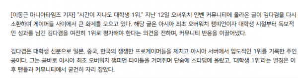 '오버워치 아시아 최초 챔피언'이라는 타이틀을 메인으로 걸어놓던데
