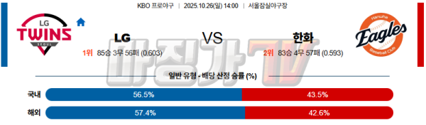 2025-10-26 KBO LG 한화 KBO/NPB분석 무료중계 스포츠분석
