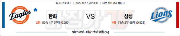2025-10-17 KBO 한화 삼성 KBO/NPB분석 무료중계 스포츠분석