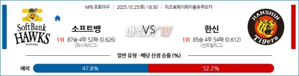 2025-10-25 NPB 소프트뱅크 한신 KBO/NPB분석 무료중계 스포츠분석