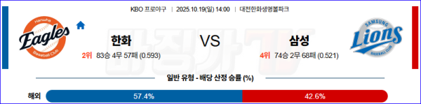 2025-10-19 KBO 한화 삼성 KBO/NPB분석 무료중계 스포츠분석