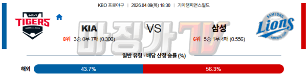 2026-04-09 KBO KIA 삼성 KBO/NPB분석 무료중계 스포츠분석