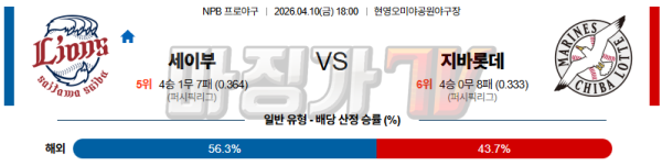 2026-04-10 NPB 세이부 지바롯데 KBO/NPB분석 무료중계 스포츠분석