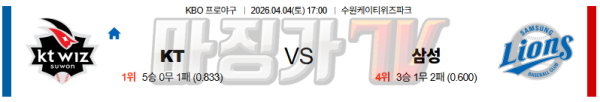 2026-04-04 KBO KT 삼성 KBO/NPB분석 무료중계 스포츠분석