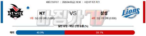 2026-04-03 KBO KT 삼성 KBO/NPB분석 무료중계 스포츠분석