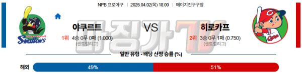 2026-04-02 NPB 야쿠르트 히로시마 KBO/NPB분석 무료중계 스포츠분석