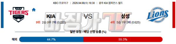 2026-04-08 KBO KIA 삼성 KBO/NPB분석 무료중계 스포츠분석