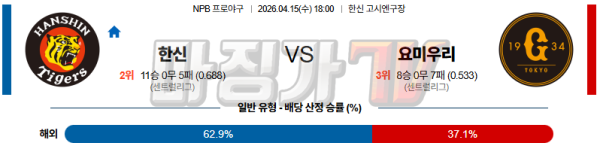 2026-04-15 NPB 한신 요미우리 KBO/NPB분석 무료중계 스포츠분석
