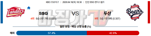 2026-04-16 KBO SSG 두산 KBO/NPB분석 무료중계 스포츠분석