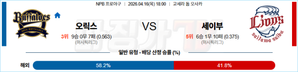 2026-04-16 NPB 오릭스 세이부 KBO/NPB분석 무료중계 스포츠분석
